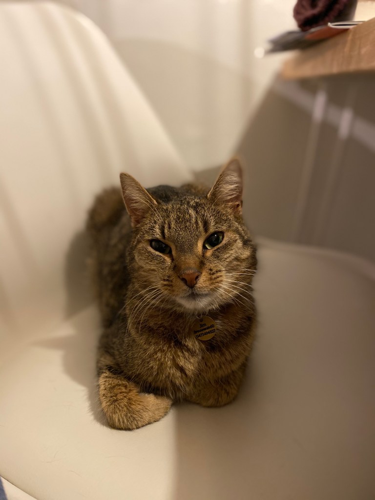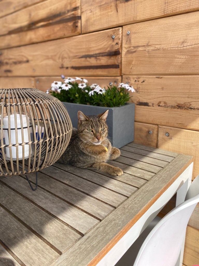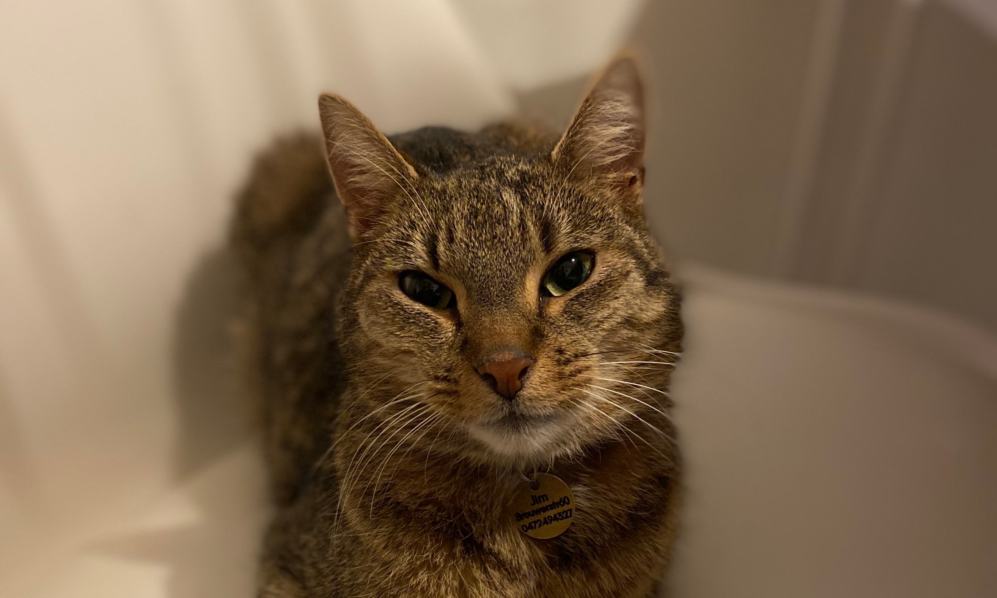 ‘Ik ben Jim en woon sinds kort in de Alfons Verbovenstraat 24. Mijn baasjes Koen & Anne zijn recent verhuisd naar deze leuke buurt in december. Ondertussen vind ik het hier wel best prettig. Hier heb ik een tuintje en wat meer groen om van te genieten. Zelf ben ik jammer genoeg geboren als zwerfkatje op het straat. Tot een vriendin van de mama van Anne me had gevonden. Niet snel daarna ben ik bij mijn baasjes komen wonen in Leuven centrum. Toen ik daar verbleef verdwaalde ik al wel eens tijdens het wandelen. Ik was onder andere een frequente bezoeker van de Bar Louis. (Shhhtt.. Ze hebben daar lekker stukjes kip). Ook heb ik de garage van het gerechtsgebouw al eens verkend. Regelmatig werden mijn baasjes opgebeld tijdens alle uren van de dag om mij te komen halen. Want ik ben veel te lief en sociaal en loop al wel eens graag een winkeltje binnen. De delhaize, nachtwinkel of essentiel, ze zijn me allemaal niet onbekend. Overal werd ik geaaid en met eten verwend. Maar ondertussen leid ik hier een rustiger leven. Hoewel ik nog wel eens graag door de tuinen van de buren dartel. Maar als ik moet kiezen waar ik het liefste kom, dan zijn het zeker en vast mijn buurmeisjes. Ze mogen zelfs over mijn buikje aaien! Het was heel leuk om met jullie kennis te maken.
