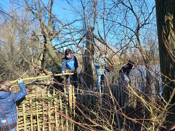 Natuurbeleving is een grondrecht. Contact met natuur in de onmiddellijke omgeving doet kinderen groeien, fysiek én mentaal. We willen zoveel mogelijk kinderen van de lagere scholen uit Wilsele de kans bieden om een topervaring in de natuur mee te maken. De kinderen van Meester Niko van het 6de leerjaar van Bleydenberg kwamen de takkenrillen tussen de beide vijvers aanvullen. Daarmee wordt de Noordelijke Vijver afgeschermd voor het publiek en wordt een veilige biotoop gecreëerd voor de watervogels. De kinderen kregen als voorbereiding een interactieve les over natuurbeheer; waarin ze o.a. leerden waarom takkenrillen zo belangrijk zijn voor het bodemleven. En …. ze vonden het leuk.
